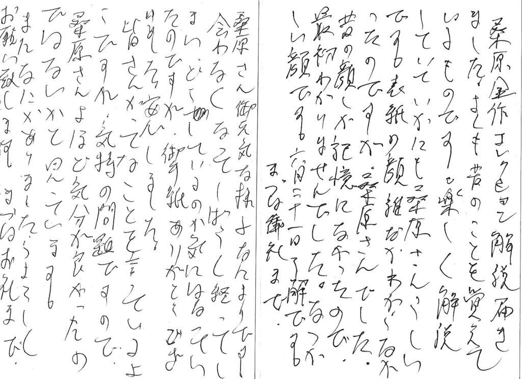 今さんの手紙には「桑原金作コレクションの解説、届きました。よくも昔のことを覚えているものです。楽しく解説していて、いかにも桑原さんらしいです。、、、みなさん勝手なことを言っているようですが、気持ちの問題ですので、桑原さん(「今晃のこけし」図譜ができて)よほど気分が良かったのではないかと思っています。、、」とありました。